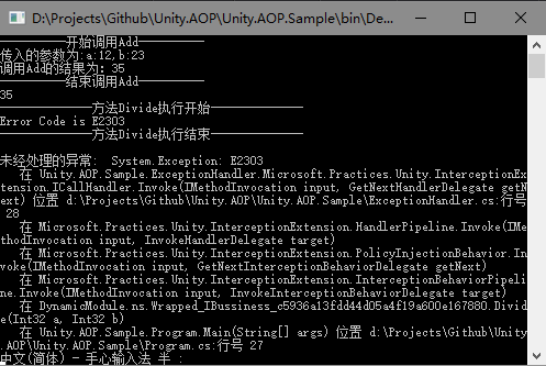 好啦,交待完故事背景,今天的主角终于可以登场啦!经常关注我博客的朋友,一定知道我个人比较喜欢 IoC/AOP 这类所谓的"奇技淫巧",就在今天我还在和一位同事在讨论 Ioc,这位同事认为 Ioc 增加了代码的复杂性,不认为 Ioc 会为项目带来明显的便利性。其实我相信大道至简,任何框架对我们而言都是高度抽象的,可正是因为有了这些抽象的层次,我们渐渐学会了关注核心的东西。这里提到了 Ioc,即控制反转,或者我们可以称之为依赖注入,那么 Unity 框架就是.NET 下众多依赖注入框架之一,这里称之为 Unity 框架,主要是避免和跨平台游戏引擎 Unity 产生混淆,以下全部称之为 Unity 框架。Unity 框架中提供了核心的依赖注入相关的接口,而微软的企业最佳实践库中为 Unity 扩展出了 AOP 相关的功能。除此以外,Spring.NET、Aspect.Core、AspectF 等都是.NET 下的 AOP 方案。那么在今天的故事中,我们遇到了的一个场景是在指定方法执行前、后插入代码片段,这是面向切面编程(AOP)的基本思想,为此,我们考虑使用 Unity 框架来简化应用程序中异常处理及日志记录流程。